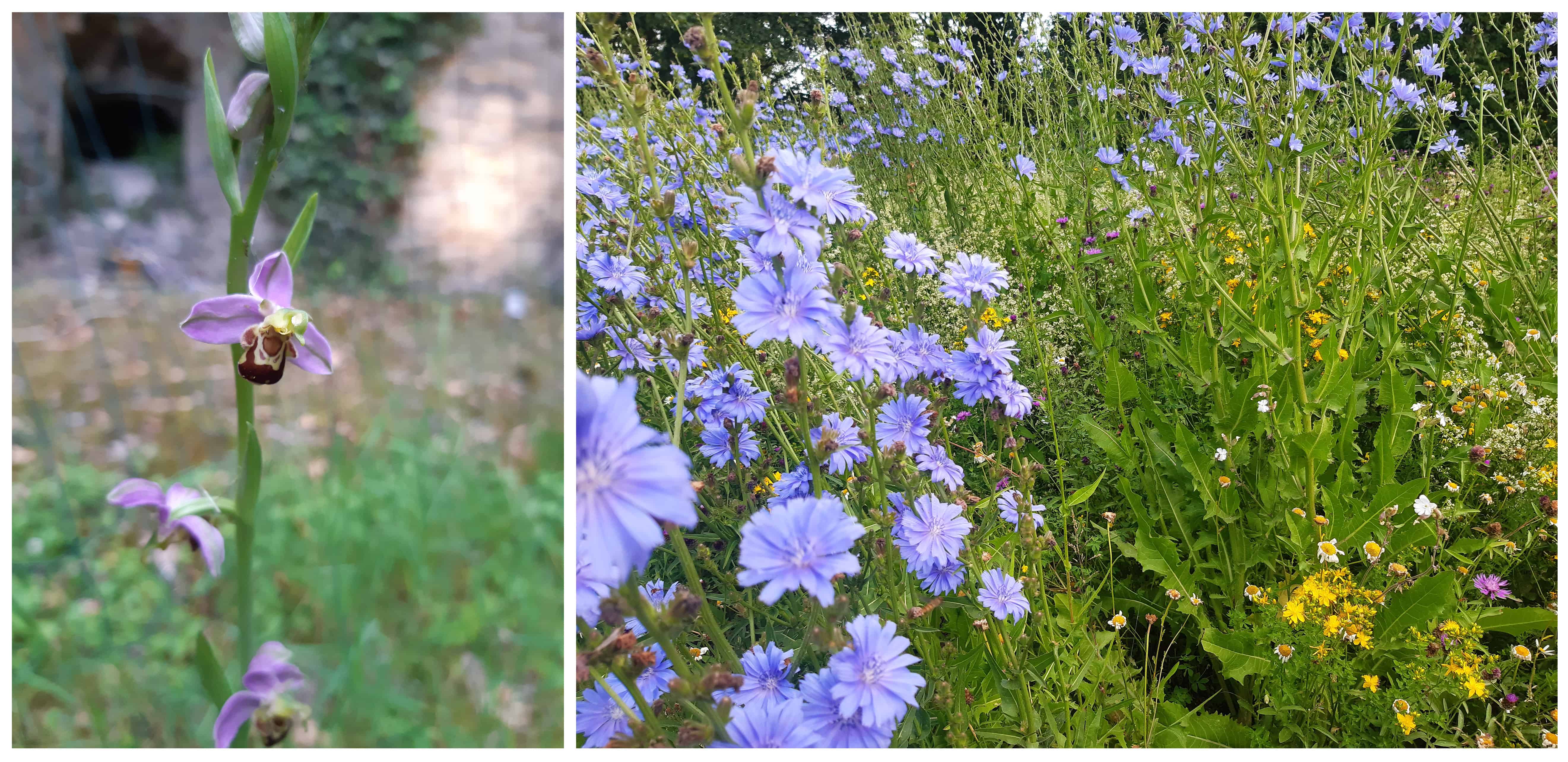 Plus que jamais, favoriser la biodiversité dans nos jardins est nécessaire et vous aurez par exemple le plus grand bonheur d’observer avec un peu de chance des orchidées ou cette matinale floraison bleu azur de chicorées sauvages. Un spectacle merveilleux !